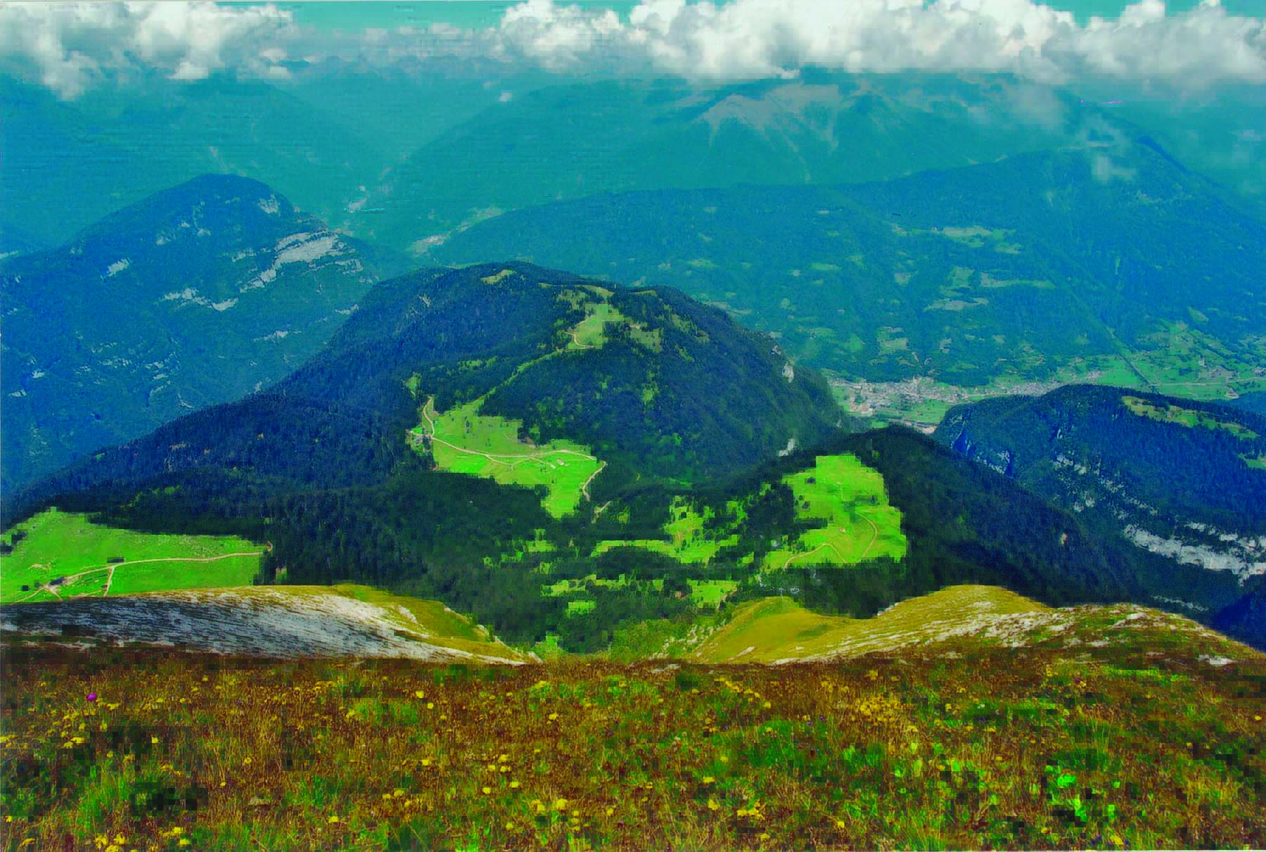 In queste immagini si può osservare com’è cambiato nel tempo il territorio dell’Alpe Vederna. Negli anni Cinquanta il pascolo ed i prati comprendevano gran parte del territorio; dalla seconda metà del XX secolo causa il maggior benessere si assiste all’abbandono di vaste zone di pascolo e sfalcio. L’economia dell’intera valle del Primiero inizia a gravitare attorno al turismo ed è proprio in questa prospettiva di sviluppo che negli anni Sessanta venne preso in considerazione il progetto di una funivia che avrebbe dovuto collegare Imèr con la punta dell’Alpe Vederna, proposta che, nonostante ottenne l’approvazione di gran parte dei consorti, non ebbe risvolti.