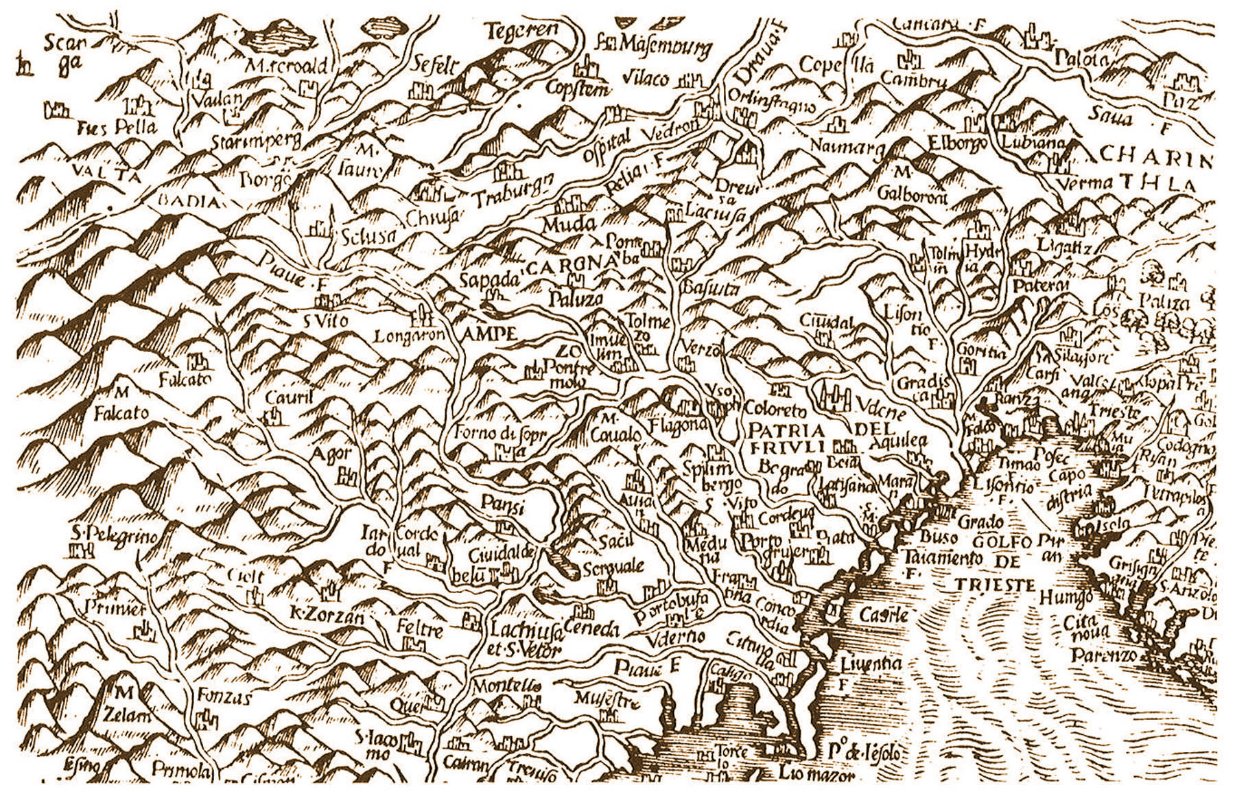 Sicuramente nel corso dei secoli vennero compilati disegni rudimentali, per fornire un orientamento sicuro alla navigazione, relativi a tracciamento di confini, ad impieghi amministrativi, per dirimere controversie. Erano manoscritti facilmente deperibili e di essi è rimasto ben poco: per l’incuria, per gli incendi, per le guerre. L’invenzione della stampa a caratteri mobili da parte di Gutenberg intorno al 1450, rappresentò un evento di eccezionale importanza anche per la cartografia e le carte geografiche a stampa si diffusero in modo spettacolare, affiancandosi o sostituendosi ai manoscritti. Si dice che la cartografia storica possegga un carattere “narrativo” attraverso il quale si possono ripercorre alcune tappe del progresso avvenuto nella conoscenza del paesaggio. Una semplice lettura può evidenziarne aspetti quantomeno curiosi: ad esempio quello dei toponimi (nomi di luogo) e, in particolare, degli oronimi (nomi dei monti), che destano particolare attenzione in quanto mostrano quanto sia stato faticoso questo progresso. Gli oronimi alpini sono infatti tra gli ultimi a nascere nella toponomastica cartografica. I cartografi antichi si arrestavano di fronte a scenari naturali selvaggi e inospitali come montagne e foreste profonde. Gli stessi romani, grandi conquistatori, non avevano interessi alpinistici; consideravano le regioni alpine, rozze e quasi inabitabili: “asperrimi montes“, dice Tito Livio.