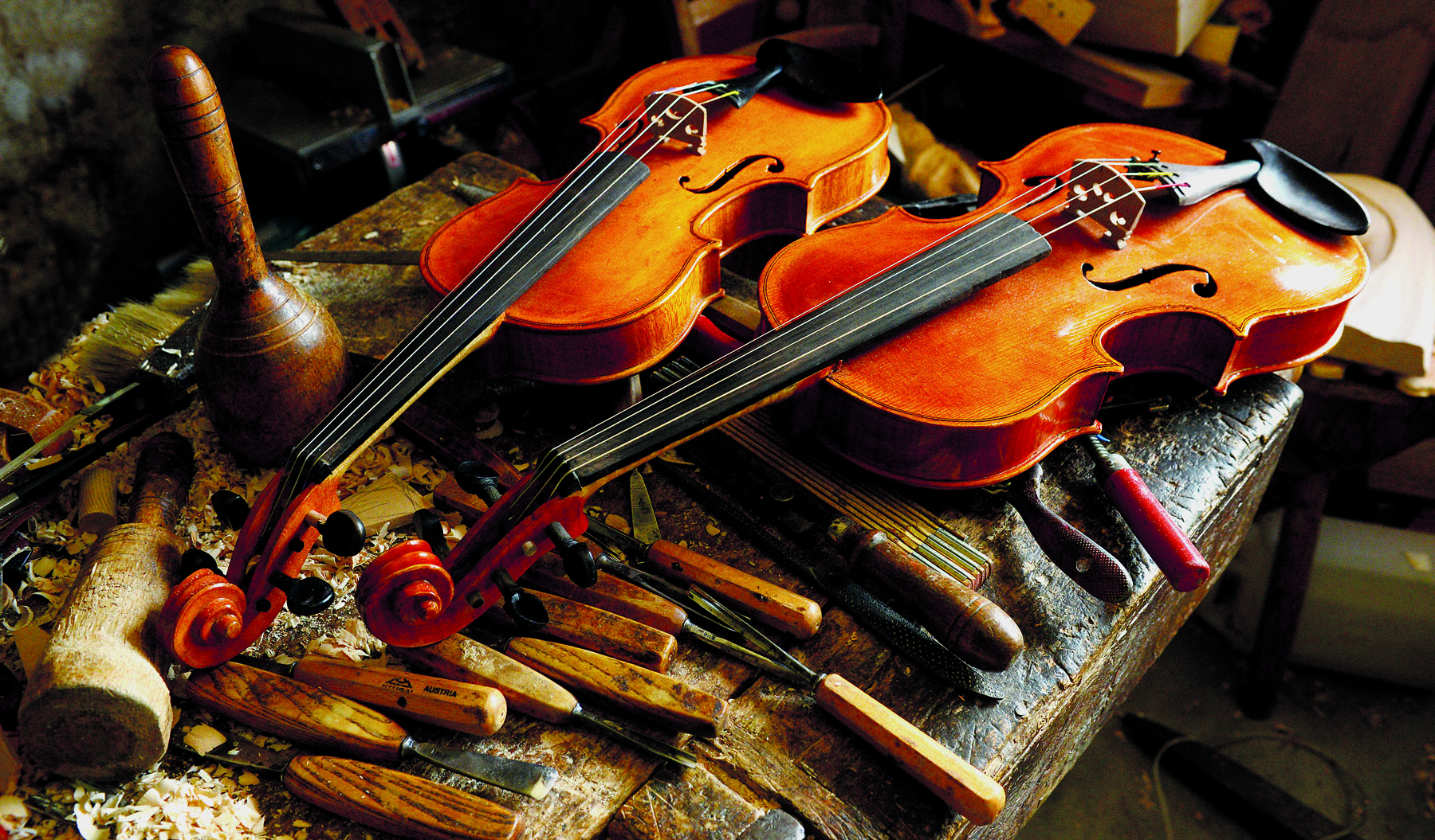 Nella scelta del legno, che deve essere stagionato, si deve guardare bene la marezzatura, quella ha valore, “sono i segni del legno, le sue striature”. Per la tastiera, si utilizza legno di ebano perché è duro e non si consuma. Ogni realizzazione è diversa, “ci sono strumenti che rispondono di più e di meno, non sono tutti uguali” e cambia pertanto la valutazione da uno all’altro. “Ci vuole molto tempo per costruire un violino, anche perché non si può cominciare e finire, è necessario procedere in diversi scaglioni, avendo tanta, tanta pazienza”.