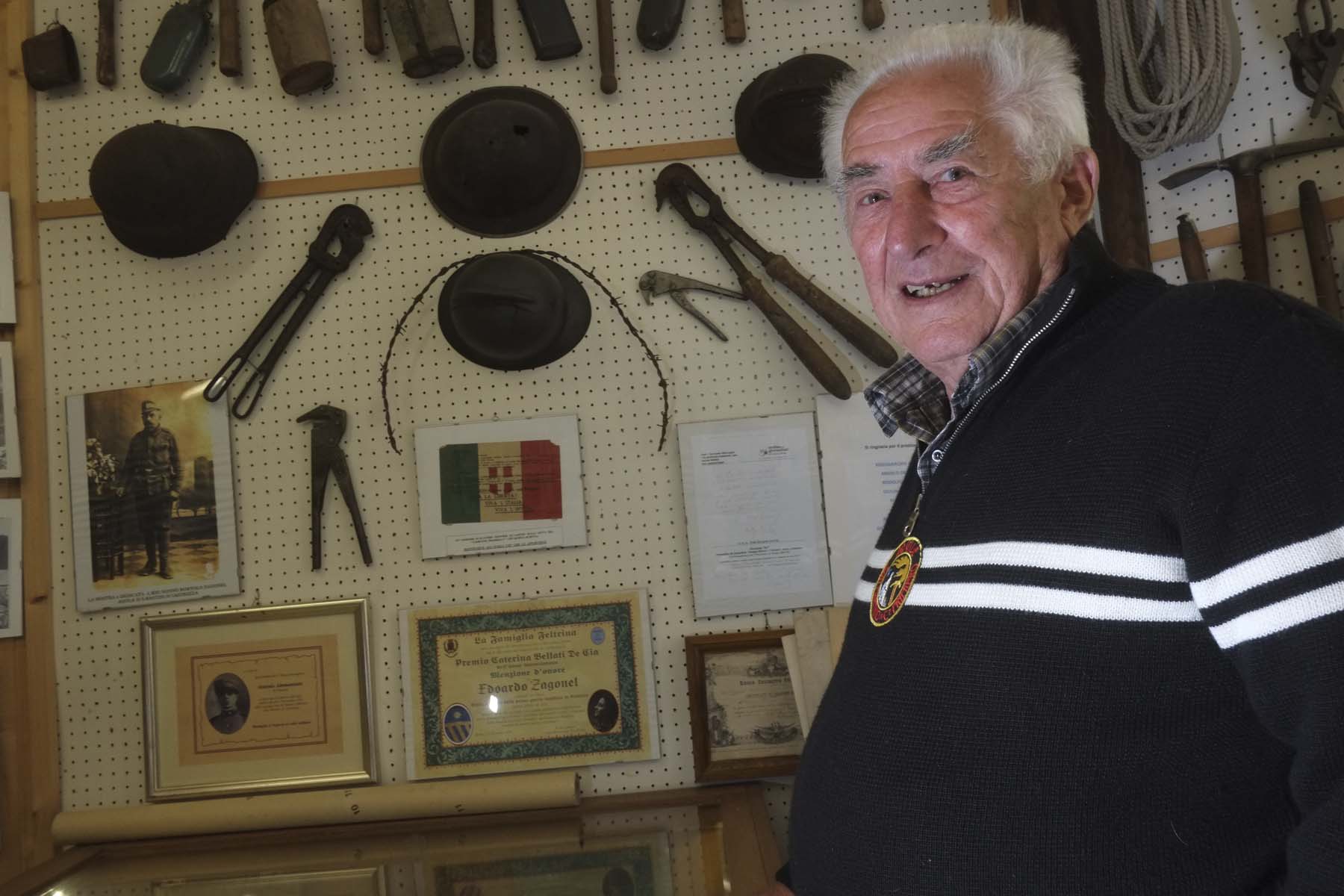 Particolarmente interessante è sentirlo raccontate la motivazione che ha fatto nascere la sua passione per i fatti bellici. Edo è una persona schiva, non ama il clamore e le interviste, è di poche parole, un po’ brontolone, ma quando racconta questo episodio, si apre in un sorriso distensivo. Gli era stato chiesto di accompagnare dei visitatori sul Colbricon dove era morto e disperso un loro caro famigliare. Secondo quanto era stato loro comunicato, il corpo non era stato ritrovato, perché gli Austro-Ungarici consumavano le carni dei nemici. La propaganda militare spesso raffigurava il nemico come un mostro capace delle azioni peggiori e insensibile ad ogni forma di dignità umana. Una notizia così sconvolgente, ha avviato in Edo una spasmodica ricerca di conferma attraverso la consultazione di tutto ciò che fosse reperibile in archivi, libri, diari, testimonianze dirette, escursioni, ma chiaramente senza trovare nessuna conferma. Riparlandone, sorride, ma da questa ricerca è nata tutta la sua profonda passione.
