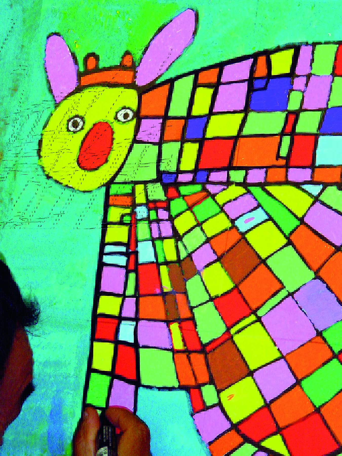 Da là poi Valerio Angelani partiva con una serie di intuizioni sue a riempire le tante zone bianche vivacizzandole scegliendo tra le molteplici possibilità fornite da marcatori a tempera con inchiostro pigmentato a base d’acqua, i classici Uniposca: colori lucidi, vivaci, coprenti e anche duraturi. A lavoro terminato, si procedeva alla verniciatura con materiali protettivi e specifici utilizzati dai pittori per preservare le proprie opere.
