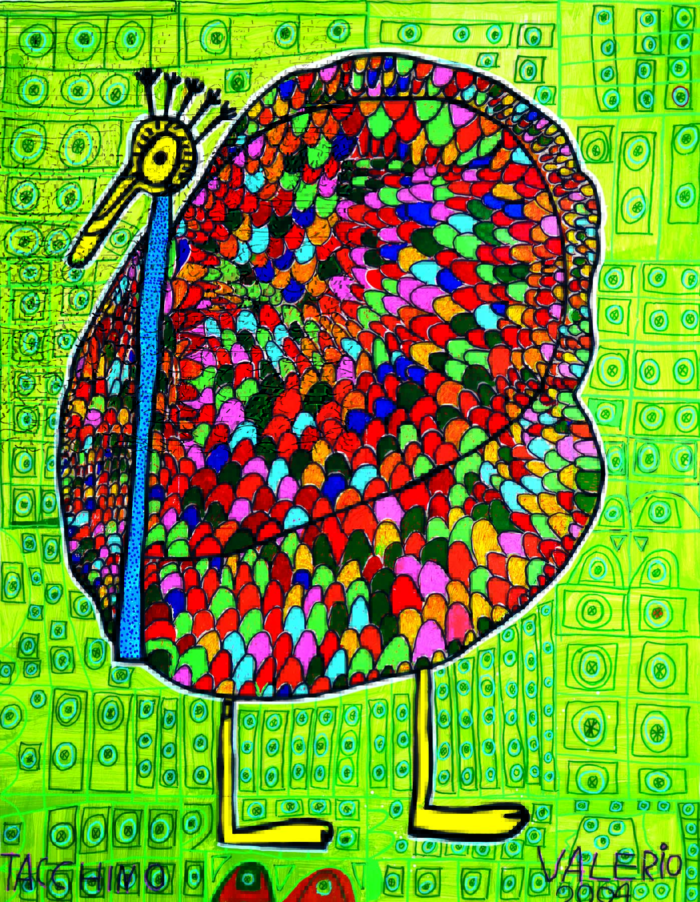 I quadri di Valerio sono la trasposizione artistica del mondo umano e animale in pura forma di colore e svelano una dimensione di gioiosa fantasia con solide radici nel reale.