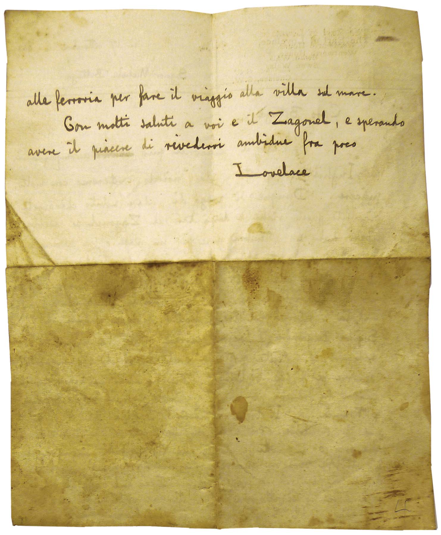 Da quel giorno, i due non ebbero più modo di vedersi. Lovelace morì inaspettatamente un paio d’anni dopo.