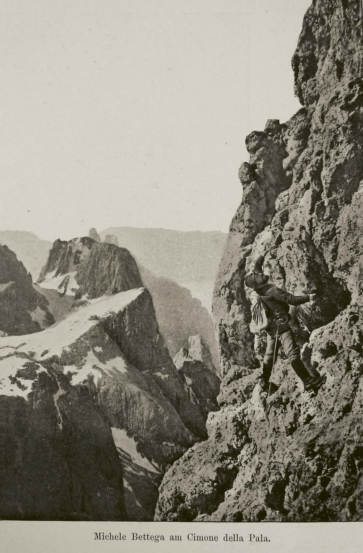 Bettega, dunque, si adegua a un nuovo modello alpinistico in cui l’approccio alla difficoltà tecnica risulta nettamente diverso da quello constatato nella vittoriosa salita della Pala di San Martino quasi tre decenni prima. I suoi sono obbiettivi che mirano all’arrampicata moderna su cime confacenti ai parametri, per dirla con Ludwig Norman-Neruda, di “montagne alla moda” (cresta dell’Alberghetto, Campanile del Giubileo, Torre Dresda, Cusiglio, etc.). In questa nuova prospettiva, peraltro, devono essere inquadrate pure le prime salite invernali a Cima Grande e Cima Piccola di Lavaredo, insieme a Theodor Wundt (1892).